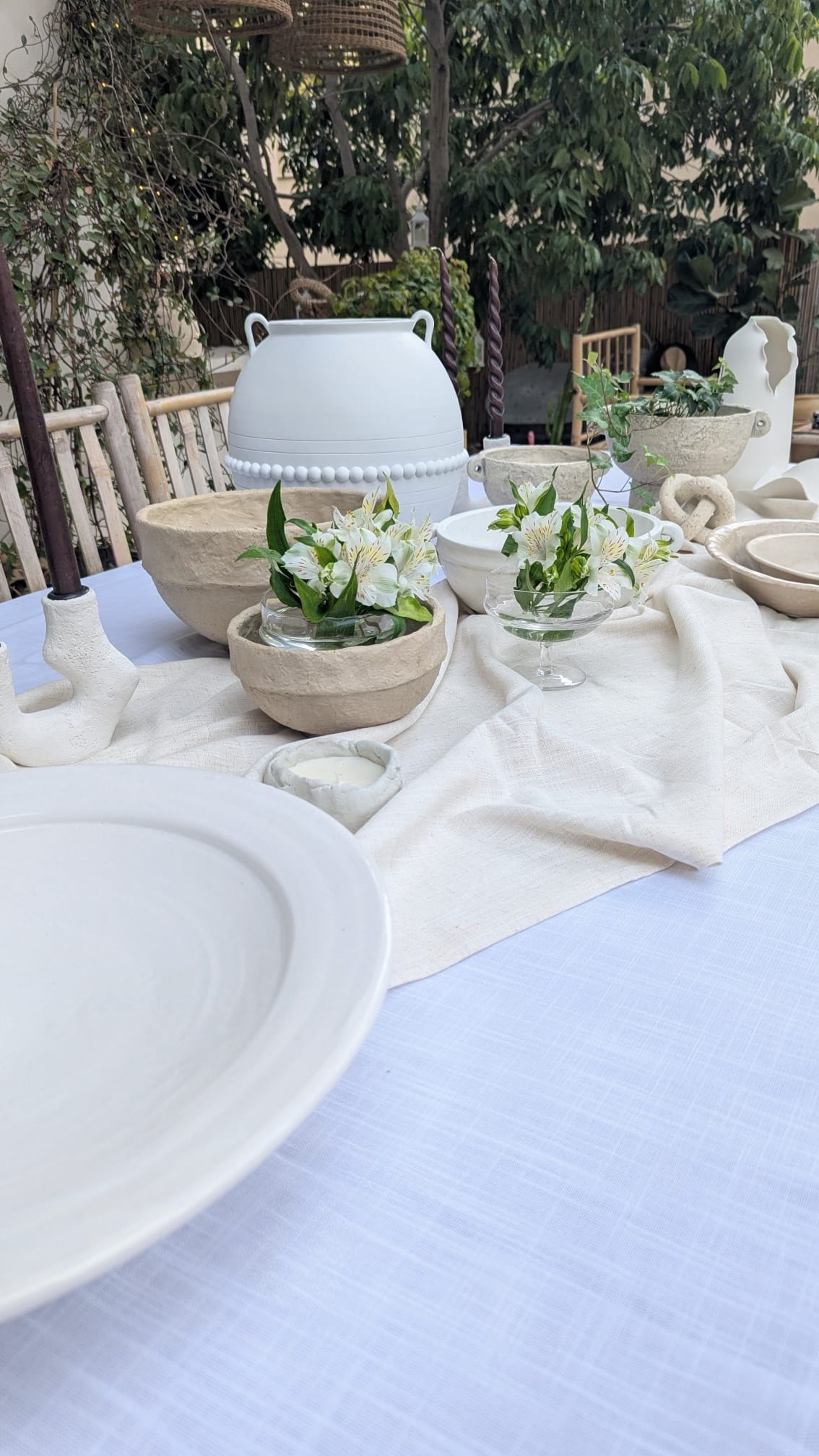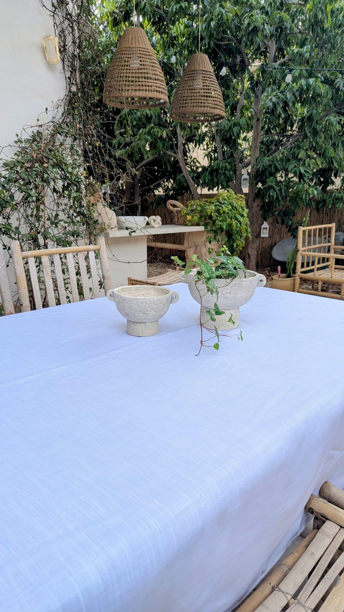 מפת דמוי פשתן טבעי בצבע לבן מושלמת לאירוח וליום יום עם בד חדשני דוחה כתמים שאינו מצריך גיהוץ.