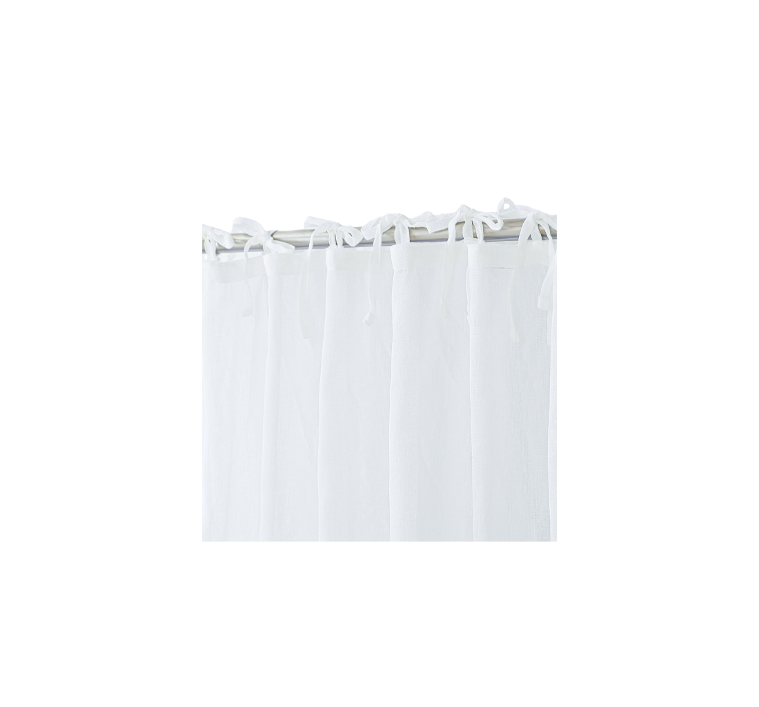וילון לולאות קשירה בצבע לבן, דמוי פשתן למראה רך נעים וקליל בחדר.