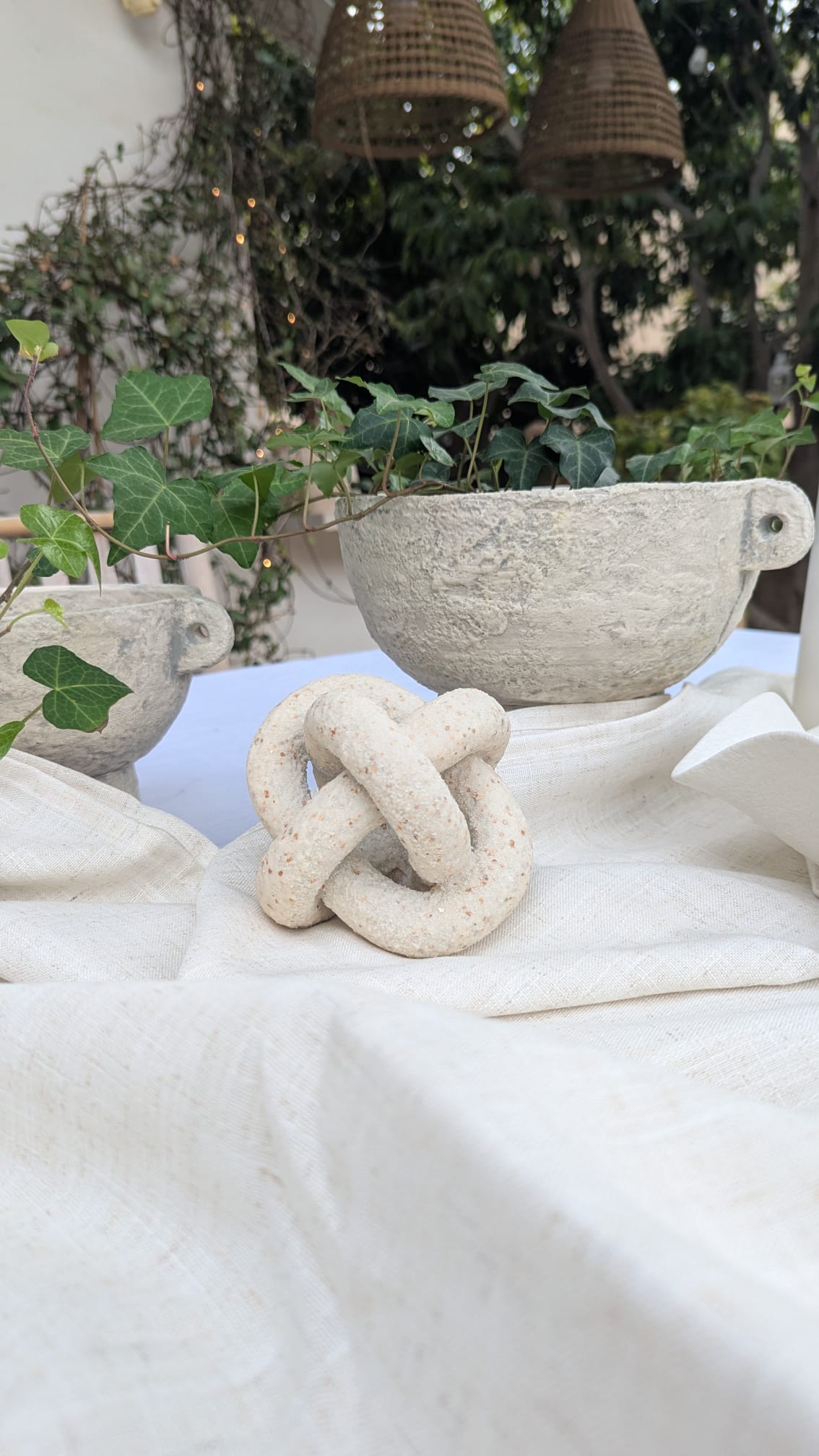 כד משגע עם ידיות בגימור לבן ייחודי עם טקסטורה טבעית. יכול לשמש כדקורציה או עם צמח..