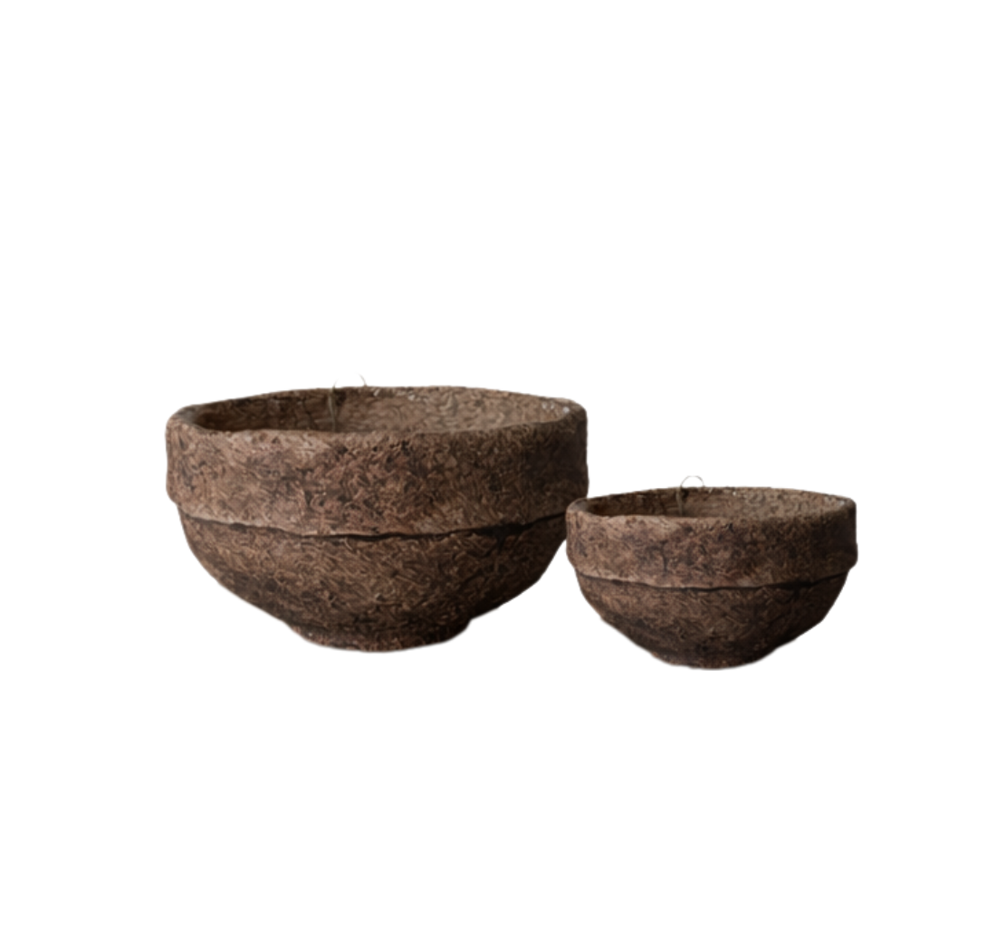 קערה בגוון חום משופשף עם מראה עתיק וטקסטורה טבעית.