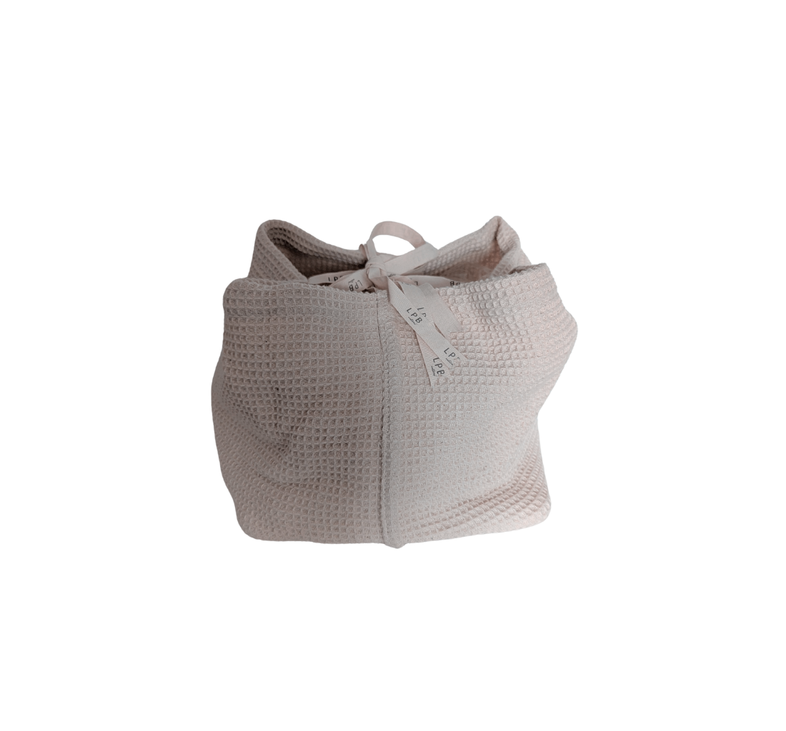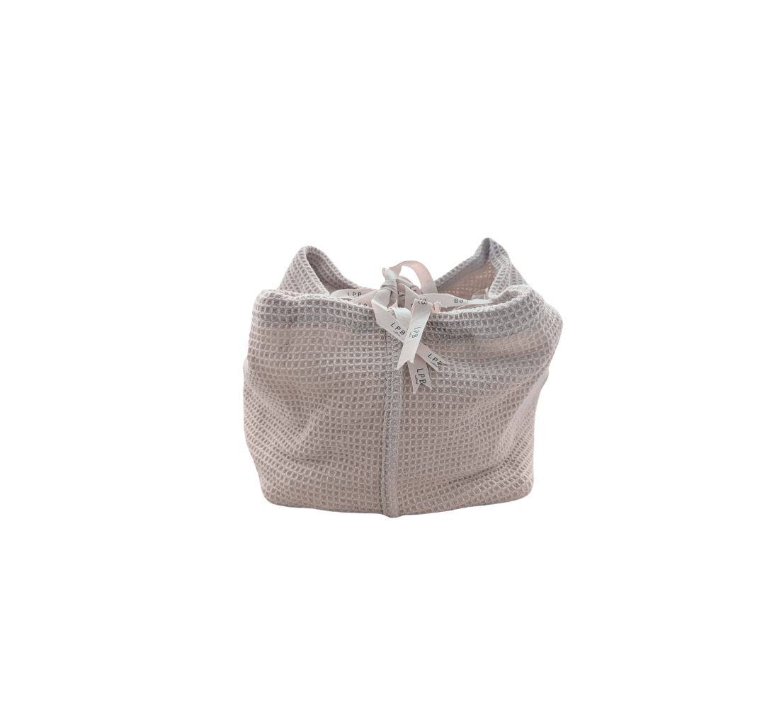 תיק מבד פיקה וופל עם סרטים לקשירה.